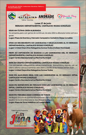 Del 23 de junio al 4 de julio, Guamo sorprenderá a propios y visitantes con una gama de eventos culturales y de entretenimiento en el marco del 56° Reinado San Juanero y San Pedro, prográmate y conoce este bello municipio del suroriente tolimense.