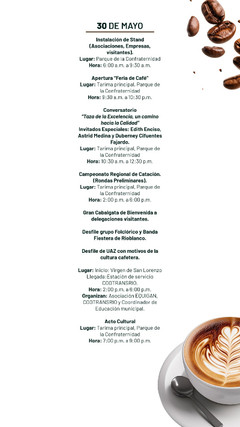 - Concurso al Mejor Café de la Región: Un evento que destacará la calidad y el sabor del café producido en la región.